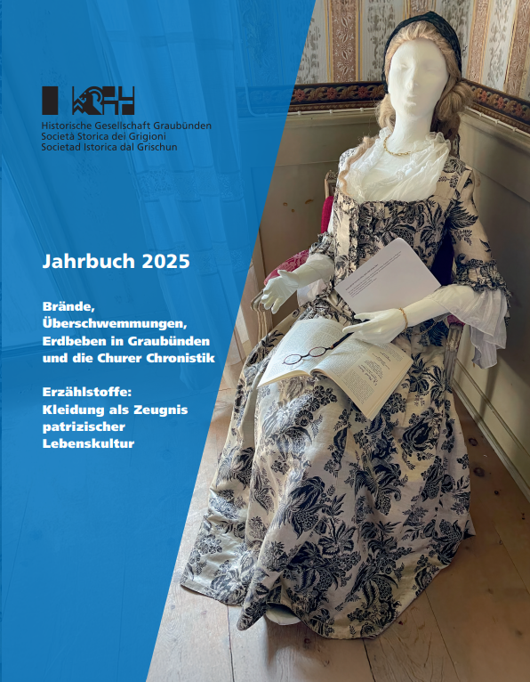 Das Jahrbuch 2025 widmet sich einerseits Bränden, Überschwemmungen und Erdbeben und der Churer Chronistik; andererseits dem Bestand an historischer Kleidung in der Chesa Planta Samedan und ihrer Musealisierung.